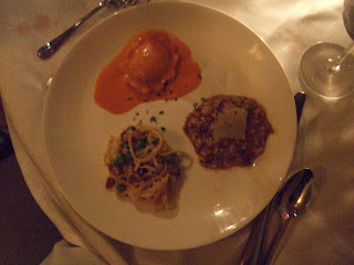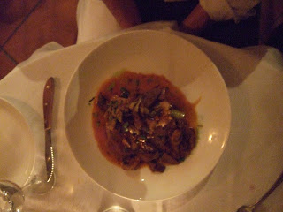 The joy of ordering here is the spectacular number of specials in all courses. The choices of pasta alone are hard to make. We didn’t. We each had a sampler of three: a superb risotto, wonderful spaghetti with peas, prosciutto and a cream sauce and lastly and least, a pasta heavy seafood ravioli sitting in a sauce that tasted for all the world like Campbell’s tomato soup. From the last item, you begin to understand the source of some of those negatives you read about. If it was the pasta course you chose, you’d have every right to be terribly disappointed.