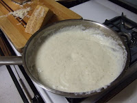 - béchamel sauce on pasta, then sprinkle lightly with parmigiano.