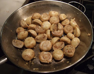 In a small skillet, over medium-low, heat a little olive oil. Add the garlic and mushrooms and cook until the mushrooms start to brown, about, about 4 to 5 minutes. Add the pearl onions and cook until onions are heated through.