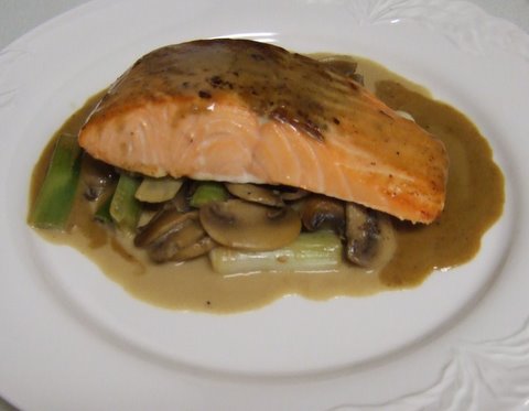 Recipe for Salmon with Mushrooom and Scallion Sauce