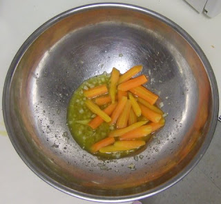 While carrots cool, stir together cilantro, onion, oil, lemon juice, garlic, salt, and pepper in a large bowl until combined.