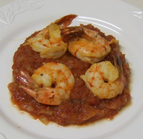 Recipe for Olive Oil Poached Shrimp with Ginger-Tomato Sauce