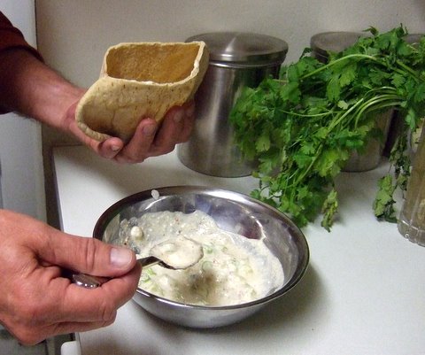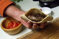 Carefully open pitas to make pockets. Insert a dollop of yogurt sauce, then the burger and finish with yogurt sauce and tomatoes. Serves 4.