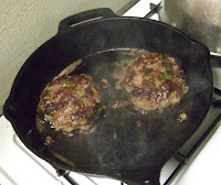 In a heavy cast iron skillet, on a grill pan or on a barbecue, grill burgers over medium high heat to desired degree of doneness, about 4 minutes a side for medium.