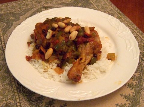 3. Heat oven to 325˚. Add the reserved chicken to the dutch oven, nestling it into the thick curry sauce; spoon some of the sauce over chicken. Cover and cook until chicken is very tender, about 1 hour and 15 minutes. Spoon sauce over chicken, serve with rice, and garnish with bacon, currants, and peanuts.
