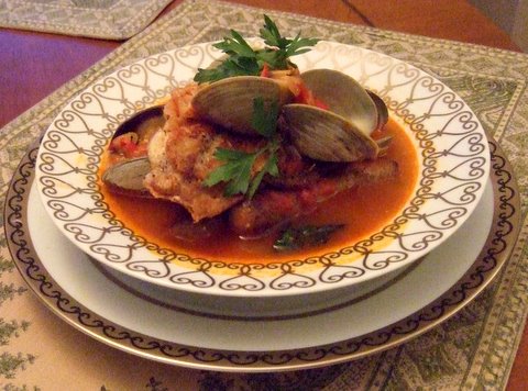 Recipe for Red Snapper with Littleneck Clams, Merguez sausage and Romesco