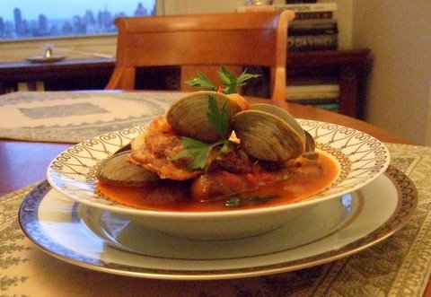The rest of the dish, the fish, sausage and clams require last minute attention and take relatively little time to make—about 10 minutes in all.