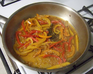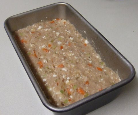 The key here is trying to find a way to keep the lean turkey meat moist without loading it with fat or calories.  Enter cottage cheese.  Now before you turn the page, you should know you’ll won’t be at all aware of the stuff in the finished dish, although the flecks of it before the loaf is cooked are a little off-putting.  But forge ahead and make this.  The Red Pepper Sauce is very easy to make and add tremendously to the color and the flavor of the dish.  Here’s the recipe: