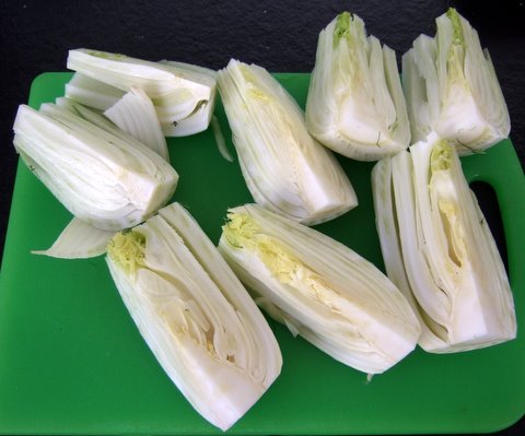 Now that I’m showcasing Monte’s Ham and Monte’s Ham glaze at two local farmers’ markets, I feel like I’m in the thick of things.  I happily dip into the profits to buy heirloom tomatoes, wonderful seedless watermelons, and this week, beautiful big fennel bulbs that are just coming into their own. The fennel gives me a chance to revisit a Tyler Florence recipe first tried when Andrew’s sister, Lauren, visited earlier in the month.   Why didn’t we post it then?  Well, truth be told, if we’re pressed for time sometimes we don’t get the camera out to record what we’re cooking.  Then there are times when we go all out with our camera only to be disappointed in the end result.  But I’d have to say the only disappointing thing about Tyler’s recipe for Swordfish and Fennel was that we didn’t give it to you earlier.