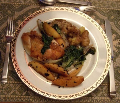 Recipe for Chicken with Escarole, Apples and Potatoes courtesy of Sara Jenkins