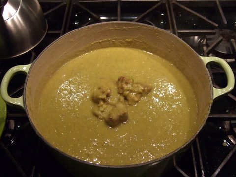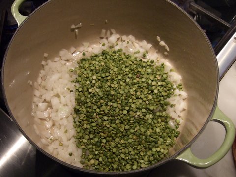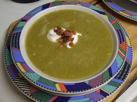 I must admit that my own coming of age in the kitchen came as a kind of an answer to one of my mother’s horrified response to my divorce.  “You’ll never eat again!” she protested.  I thought, oh yes I will.  And I’ve enjoyed cooking ever since.  In fact, I enjoy it so much that it now consumes the better part of my day.  Between getting Brick Kiln Kitchens LLC up and running and getting Chewing the Fat written and published, I have become a virtual slave to the kitchen my mother worked so hard to avoid.  And today, in her honor, I want to share a recipe for that most comforting of meals, a bowl of soup.  In this case, Split Pea soup.  A rich, deeply satisfying soup where the ingredients literally melt in the pot soaking up all the goodness of the Ham bone, becoming one beautiful shade of green.  It’s a delicious way to use the last of a Monte’s HamTM.  And in honor of my Mother, it’s incredibly easy to make.