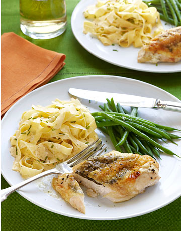 Truffled Chicken Breasts with Pappardelle in a Creamy Garlic Sauce, an homage to Ina Garten