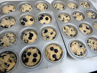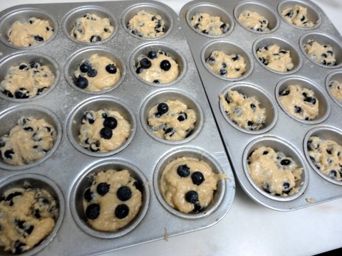 Add the milk mixture to the dry ingredients and fold them in. Fold in the berries and spoon the battter equally into the prepared muffin cups.