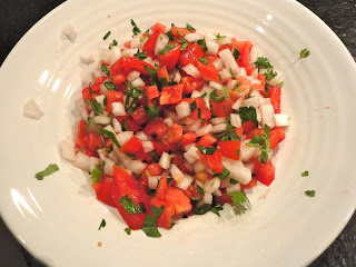 This past weekend, I had 3 roma tomtatoes, a yellow tomato, 1 banana pepper, 1 jalapneo, 1 white onion, 1 poblano pepper, 5 cloves garlic and a squeeze of lime juice.