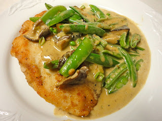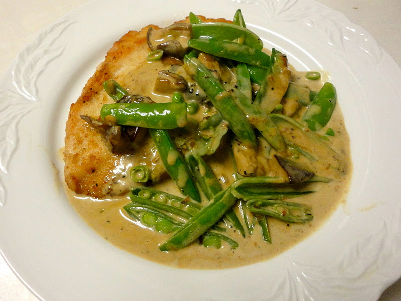 Recipe for Chicken with Creamy Mushrooms and Snap Peas from Food Network magazine
