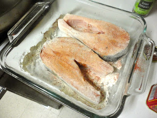 Last summer, our great friend Michael came over to our house with a cookbook given to him by one of his favorite customers at the Bridgehampton Florist, which he co-owns with his husband, Jim. (Yes, that Bridgehampton Florist…viewers of the Barefoot Contessa take note). “Plenty”(Ebury Press 2010) is the work of London’s Yotam Ottolenghi with a great assist from his Chef/Business Partner, Sami Tamimi. The book bowled us over. It is a marvelous collection of recipes entirely vegetarian and incredibly beautifully photographed. Page after page enticed us to consider quinoa, pomegranates, and Bulgar. But when it came time to fire up the stove and bring Ottolenghi’s into our kitchen, we landed on an Ottolenghi recipe from January’s Bon Appetit. I’d apologize to vegetarians everywhere except that Yotam’s recipe for Salmon Steaks in a spicy tomato sauce needs absolutely no apology. It’s deliciously satisfying, healthy as all get out and comes together in under 30 minutes.![]() |
