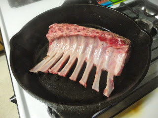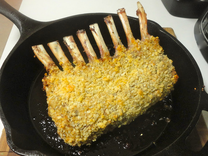 I’d be hard pressed to remember the last I cooked something this impressive and yet so easy.  I must admit to having approached preparing rack of lamb with a degree of trepidation.  This dish is restaurant territory to me and I associate it with a hefty price tag on menus everywhere.  Truth be told, while not inexpensive, the lamb for 2 was about $18.00. Bless the people of New Zealand for this relative bargain. And bless whoever ‘frenches’ these racks because they involve no trimming at all and can go straight into the pan.  New Zealand lamb accounts for almost 1/3 of all lamb eaten in the US. Australia is by far and away the biggest producer of lamb, responsible for 2/3 of all the lamb imported into this country.  While researching this piece, I was quite surprised to discover lamb is very good for you. Who knew that Lamb is a significant source of omega-3, containing about 50 {4e4771bbe073b579fdd8e596ee487f65145483febbc8ba0a80525f62b26cad86} the amount found in cod or tuna on an ounce-for-ounce basis ?  Or that lamb contains something called CLA (conjugated linoleic acid), that protects the heart?  And it’s a very good source of immunity boosting protein, heart-healthy vitamin B 12 and niacin. Lamb is even listed as one of the World’s Healthiest Foods.  And we haven’t even gotten to how delicious it tastes.