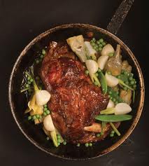 When the lamb is ready, transfer it to a warmed platter with the vegetables. Snip the strings and serve a la cuillere, with a spoon. Serve the condiment on the side.