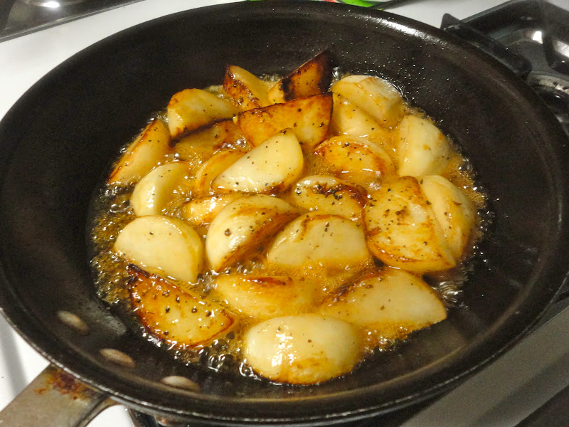 Sprinkle the turnips with the salt and pepper and cook, tossing them