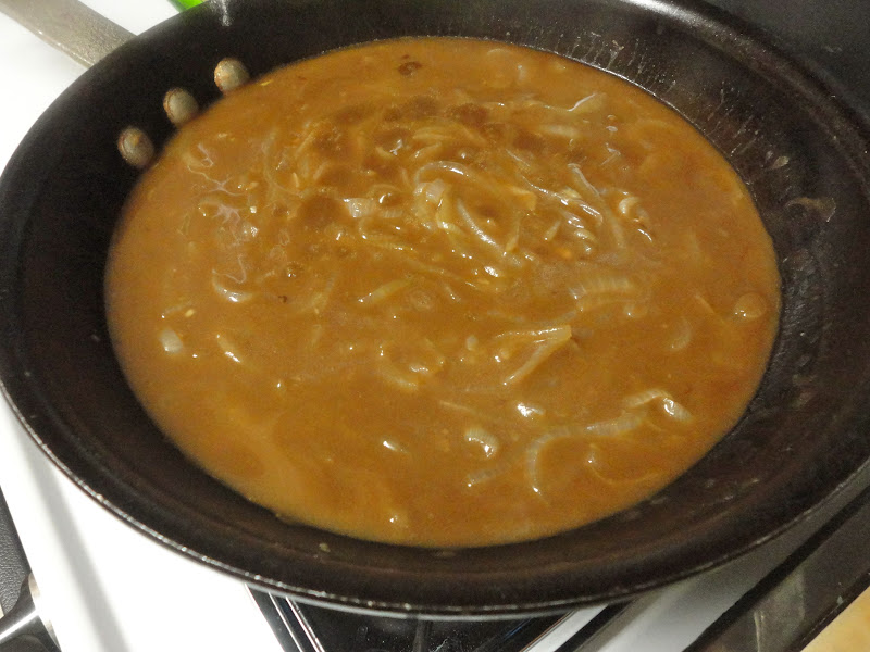 Add about a half a cup or more of beef stock and a few dashes of Worcestershire sauce. Stir until the gravy becomes thick, but still runny. Season with salt and pepper.