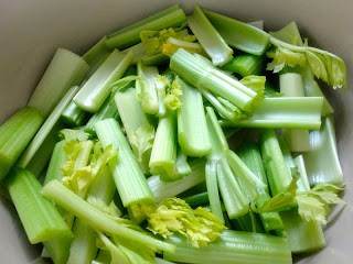 Cut the celery into 3 inch long pieces. Place in a dutch oven with water to cover. Add 2 tbsps. Oil, coarse salt to taste, the turmeric and the garlic. Bring all the a boil, uncovered, until the celery is tender.