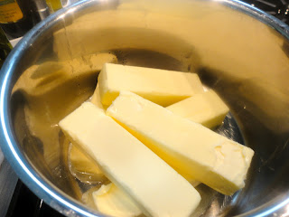 Preheat the oven to 350 degrees F and grease a 9 by 9-inch pan (or double the recipe and use a 9 by 13-inch pan, which is what Andrew did).