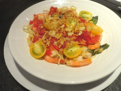 Spaghettini with Shrimp, Tomatoes and Chile Crumbs from Dan Kluger of ABC Kitchen Serves 4.