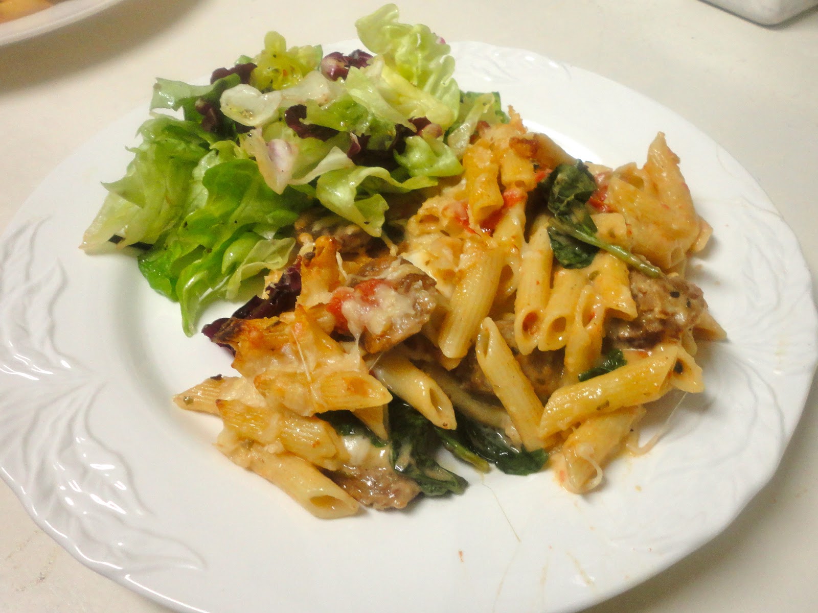 I made this over the weekend. It was delicious. Of course, I made some changes due to what I had on hand. I used whole grain penne and regular mozzarella. I used spicy sausage because we like it like that. The best thing is we have a lot of leftovers.