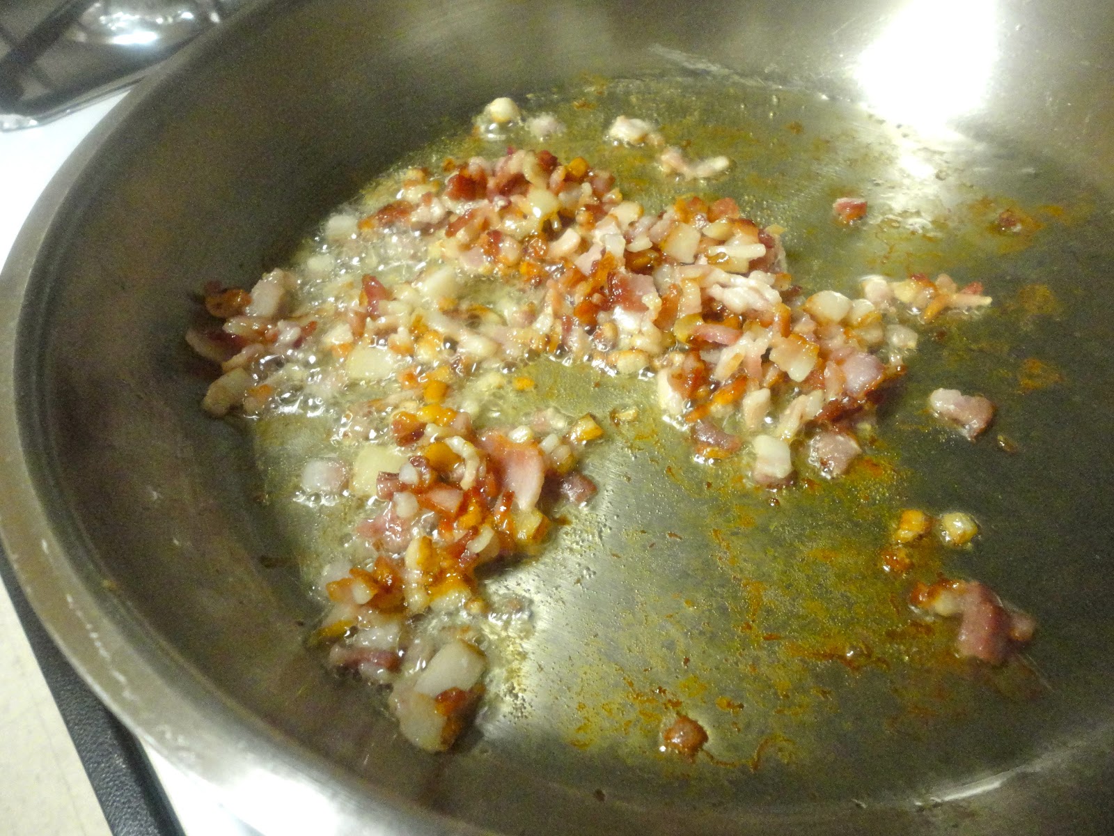 The meatballs came from Cuisine-at-Home where they were called “Mini-Bacon Meatballs”.  Now I realize Bacon has almost become a cliché.  But think of another ingredient that is as easy to work with and so transformative whether you wrap a scallop in it or top your meatloaf with it.  The smoky flavor, the glorious fat in the streaks of pork, the crunchy texture—put them all together and they seem to improve almost anything from bread pudding to a simple green salad. Here they let you use very lean ground beef which relies on the bacon for its fat content.  The idea here is to cook them ahead in some quantity so that you can freeze them, put them into airtight containers and take them out of the freezer any time you want.  Smaller than ordinary meatballs, they’re about the size of a golf ball.  Cuisine at Home claimed they can be used in soups and even as appetizers.  I have a container of them in the freezer now.  But when I first made them, they went right into the recipe for “Meatball Stroganoff”.