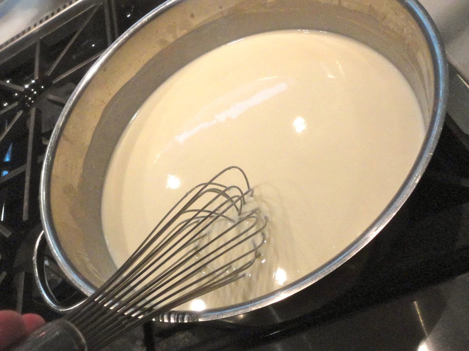 Gradually add the warm milk, whisking constantly to prevent lumps.