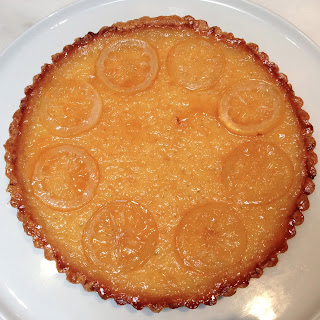 As someone who leaves the baking to Andrew, I am forever astonished when someone describes anything baked as ‘easy to make’. But that’s what John Barricelli writes of this particular recipe. I’ll take his word for it. The pastry is a Pate Sucree, also from “The Seasonal Baker”, the Chef’s 2012 cookbook from Clarkson Potter. Its taste is similar to a butter cookie and, in fact, the Chef even recommends rolling any leftover bits and cutting them into cookie shapes. The recipe is for a double crust or two single crusts. The latter was just perfect as Andrew was making two tarts to take to a dinner party. You have to build two hours refrigeration time into the recipe to make sure the dough is refrigerated that long so that it’s firm. Rolled out, the crust is then partially baked using pie weights until it’s just starting to turn golden. The pie weights are removed. It bakes a little longer and then the filling is added and the baking process is completed and the whole tart is cooled to room temperature. At this point you can refrigerate the tarts and serve them just as they are. Or you can go an extra mile and top the tart with a ring of lemon slices candied in sugar syrup. Chef Barricelli lets the home chef leave out this final touch. But need I tell you, not in this house you don’t. A dollop of crème fraiche and you’re done. Here’s the recipe: