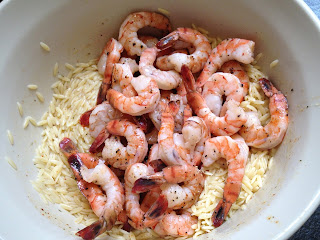 If you’ve never had Ina’s Roasted Shrimp, you’re in for a revelation. Roasting concentrates the shrimp flavor. We’ve posted her recipe for Roasted Shrimp Cocktail and once you’ve tried that you’ll never boil another shrimp, I can almost guarantee. Added to the roasted shrimp is a wonderful set of aromatics. Dill and Scallions and Parsley add color to the dish too. The Feta cheese adds a tangy contrast. So what exactly did I change? Well back to those comments: Lemon juice and olive oil go into the warm Orzo but a lot of recipe users felt there’s wasn’t enough citrus. I upped the amount by half and the flavor came shining through. I also doubled the diced red onion. And I also used a full pound of Orzo. But the most fundamental change I made was the counter the comment that the dish was blander than expected. And here, I was able to command my secret weapon, “Big Devil” from Pollen Ranch (www.pollenranch.com). I’ve mentioned the merits of Fennel Pollen before and, in the interests of full disclosure, I am part of a group that develops recipes for Fennel Friday Cooking Club. Ina’s Roasted Shrimp and Orzo arrived just when I was wondering how to use the sample I’d been sent. “Big Devil” is a blend of spicy heat made up of Pollen Ranch’s Fennel Pollen, red pepper seed, habanero, mustard seed, flour pepper mix, paprika, ginger, cayenne, garlic, onion, fleur de sel, curry and cilantro. You owe it to yourself to see what Pollen Ranch can do for your cooking. But if you’re reading this and want to use the recipe right away, you can substitute Red Pepper Flakes this time at least. By the way, the dish is completely expandable. I made it to serve 7 and we had plenty leftover which was just as delicious the next day. Feel free to multiply or divide.