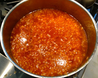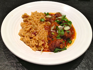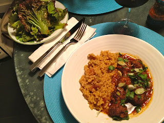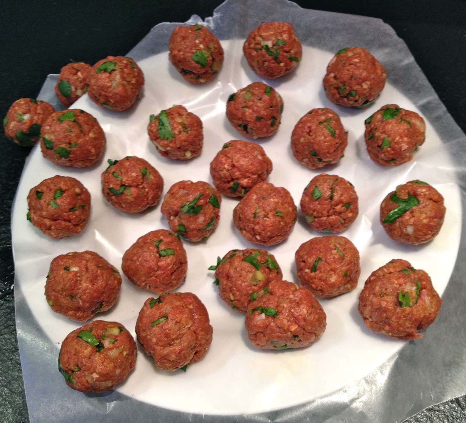 My dear friend Amy is fond of bringing us unusual ingredients. She is an incredibly thoughtful gift-giver whose most recent introduction was to a black olive oil called Azienda Agricola Persiani from Oliviers and Co, a French purveyor. The label reads: “An Olivier and Co. selection: it’s the perfect traceability of a small batch of olive oil, the orchard, the plot, the producer and even the tank exclusively booked for OandCO are checked.” Translated, the name means Persian Farms. It turns out that “Persiani” doesn’t refer to the former country of Persia but to the Persiani Family who produce the Olive Oil. The oil is amazing as a dipping oil. But I used it for this Pomegranate Cumin salad dressing, a Bon Appetit recipe. The first ingredient in the dressing was also a gift from Amy: Mymoune Pomegranate Molasses from Lebanon. I have no clue where the Cumin came from but we’re squarely in North Africa now with both our boulettes and our salad dressing. Now if you don’t have pomegranate molasses, there’s a way of making your own listed below. And you can use any great extra virgin olive oil you please. The recipe for Amy’s dressing follows the one for the boulettes.For the Tomato Sauce: