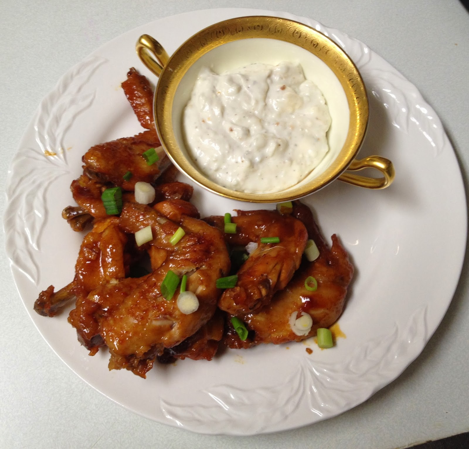 What is it about those delicious morsels of meat, barely there, that entice so many? I could easily eat these til I pass out! "Sweeter at the bone" comes to mind but they sure do benefit from a savory sauce and that blue cheese dressing….swoon…. I'm a blue cheese junkie – love it!!