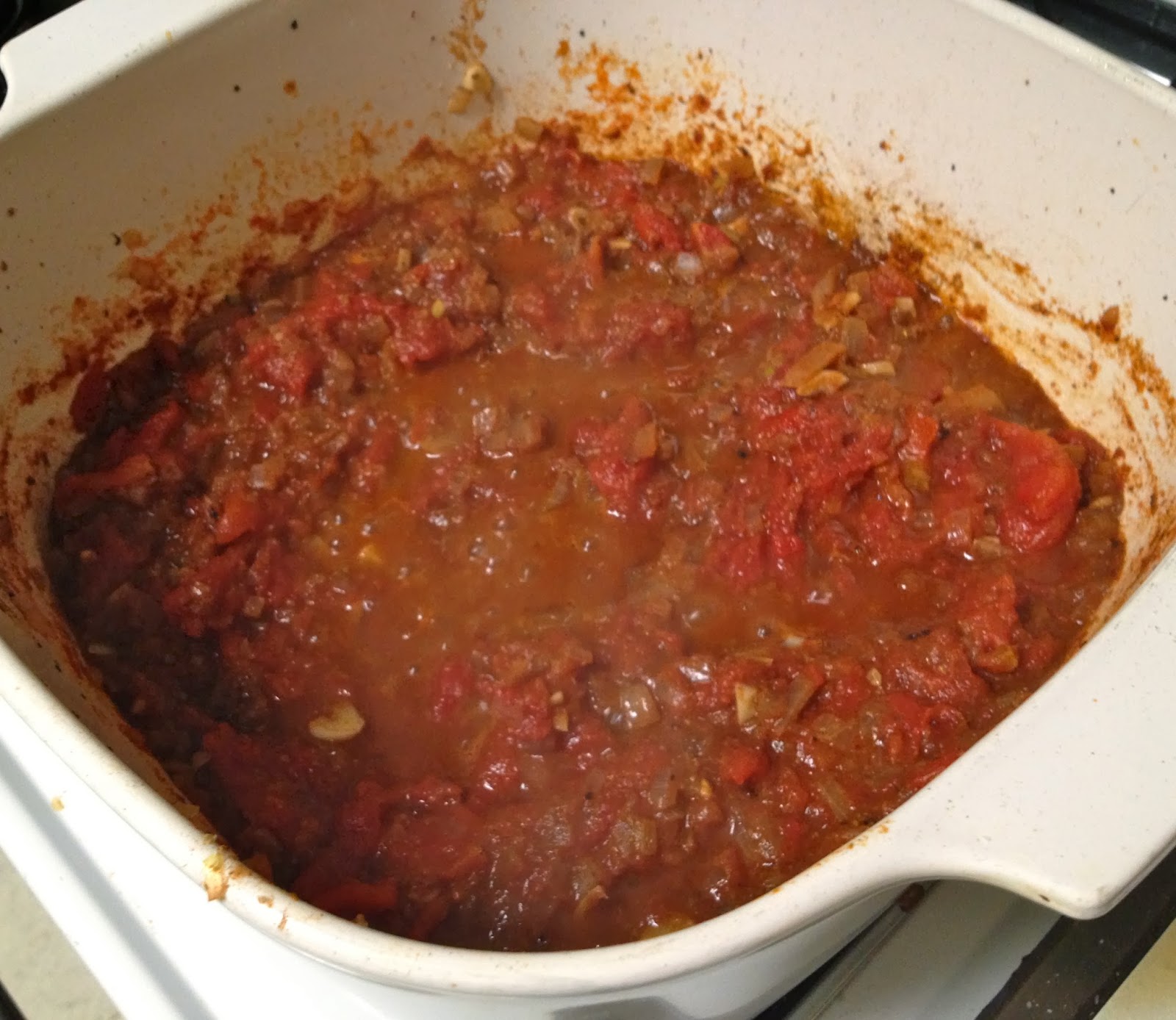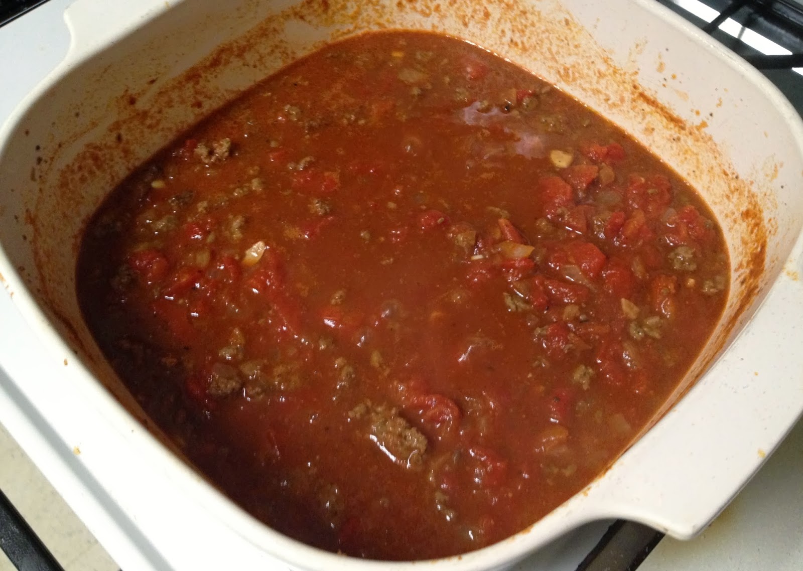 What was the leftover learning? In our mad dash to get dinner on the table on a weeknight, aren’t we inclined to reject any recipe that takes longer than the “less than an hour” this one was advertised as taking? In fact, judging from what’s popular on ChewingtheFat and what’s not, 30 minutes is the gold standard for weeknight menus. That’s really a shame because in this case, and in many others, the extra time results in something far more delicious. The flavors develop and merge giving us a much denser, meatier stew. The tomato and lamb flavors became less separate and instead combined to make one glorious taste. But it wasn’t just the lamb part of the equation that improved it was the pasta.