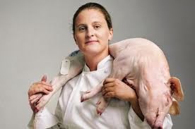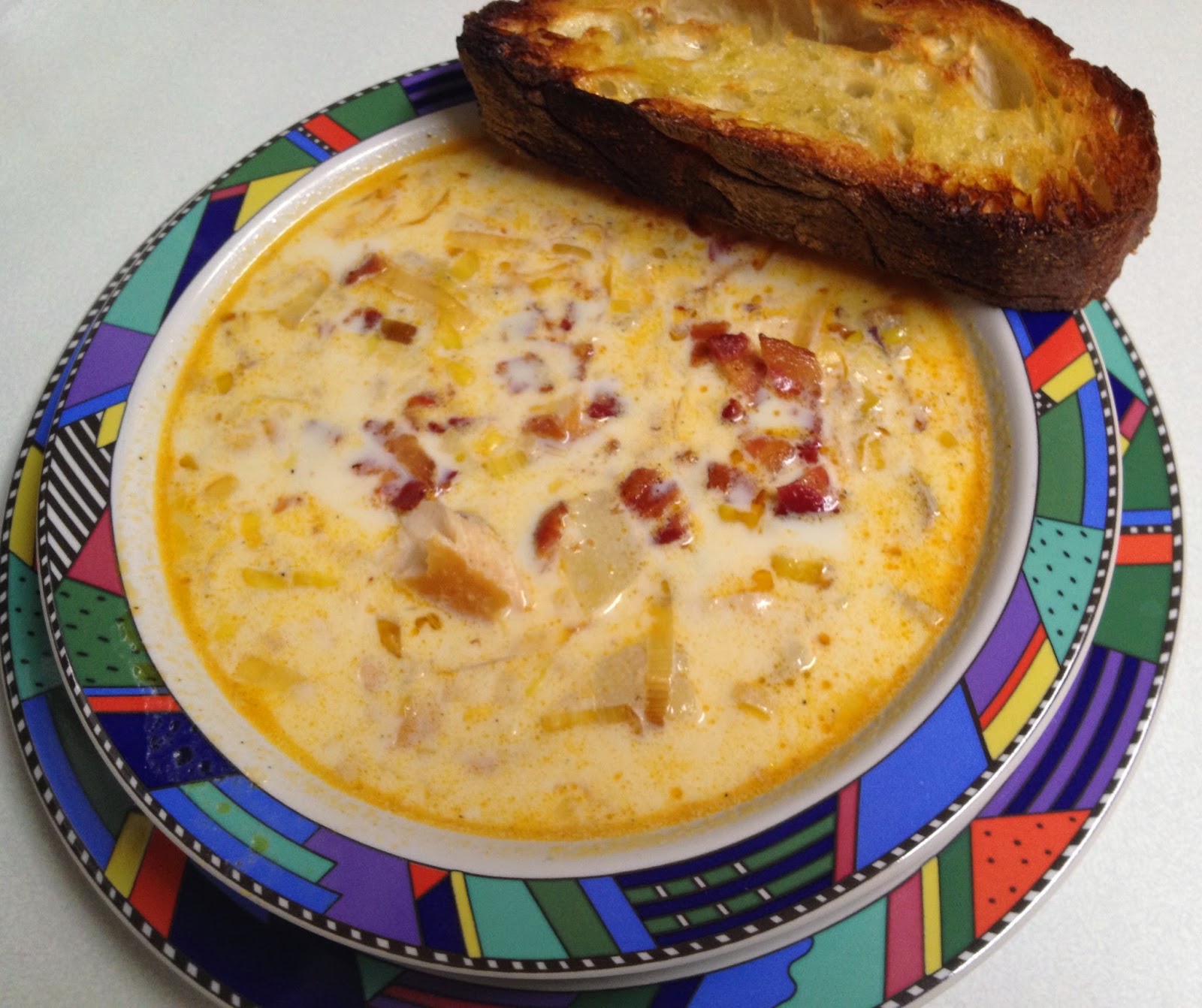 I am a huge fan of April Bloomfield and I’ll follow her anywhere—to The Breslin in the Ace Hotel, next door at the John Dory or down in the Village where she practically invented the Gastropub at “The Spotted Pig”. ( For a list of posts about Chef Bloomfield, go to the bottom of this post.) I was cruising through her cookbook “A Girl and Her Pig” (Ecco /Harper Collins 2012) when I came to her recipe for Smoked Haddock Chowder. It’s been on the menu at the Spotted Pig ever since it opened. I’d never succumbed to its charms at the restaurant or its price tag : $16.00 a bowl. And quite frankly, Smoked Haddock is a fish I remember vividly from childhood. Back then it was in something called “Finnan Haddie” and if I never saw another plate of it, I would die happy.