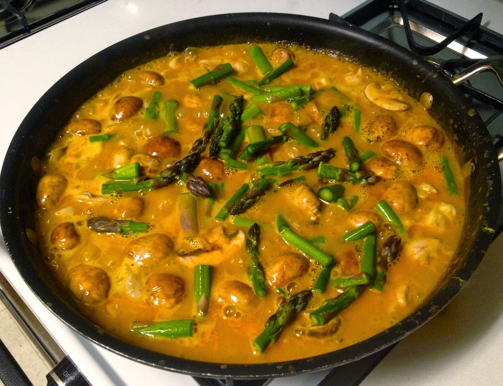 For Dinner in under 30 minutes: Penang Curry with Chicken, Asparagus and Mushrooms