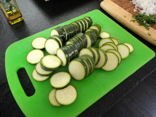 Finally, there are the “Tortinos of Zucchini”. This recipe came from the late lamented magazine “La Cucina Italiana” which I loved to read but which died earlier this year, a victim of the battle between print and new media. La Cucina lost. But I’ve kept every copy. “Tortino” means little pie in Italian. Minus the pastry, these cheese and zucchini treats are very pretty. They are, however, quite labor-intensive especially when being made for 12. However, if you are entertaining a smaller crowd, they make a great impression. And they gave me a chance to use my stainless molds that I bought at L’Atelier des Chefs on my last trip to Paris. Here are the recipes: