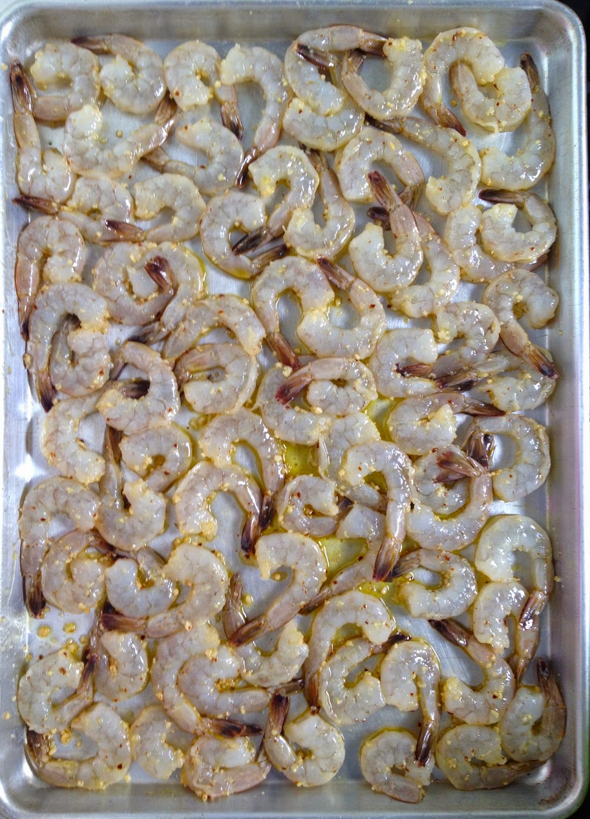 4. Put the shrimp on a single layer on a sheet pan. Salt and pepper the shrimp and put them in the oven. The smaller sized shrimp (31-35 count) will cook in 5 minutes. Larger shrimp will take only slightly longer. Do not overcook. Shrimp are done when they turn pink and are opaque all the way through.