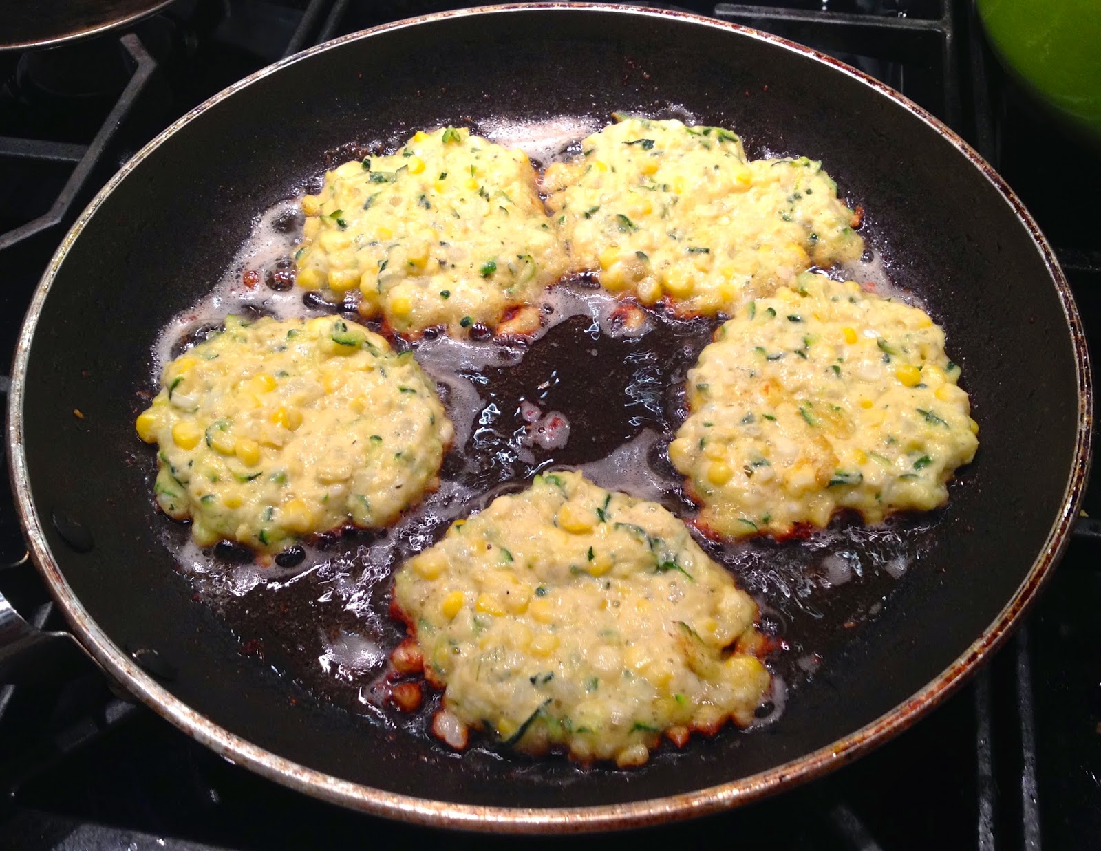 I’ve always gotten a kick out of stories of massive Zucchini crops suddenly emerging in August and causing their growers to wonder what on earth to do with all of them. When I was in Elementary School, I distinctly remember a classmate whose mother’s solution was to send her son armed with enormous bags of Zucchini to school each day. He was quite systematic in his giving. He would go to a different teacher’s classroom every day and deposit a bag on her desk, beaming. The first teacher was overwhelmed with his mother’s largesse. But by the end of the week the last teacher was simply overwhelmed, likely because Teachers #1, 2, 3 and 4 had already shared the bounty of Gordon’s mother’s garden with all their fellow teachers. Did she go home and make Zucchini bread? Or Zucchini pickles? I can’t help but hope that she made Zucchini Fritters because undoubtedly Gordon and his well-intentioned mother would have been forgiven. These wonderful cakes, fried to a crisp, are an American classic. Did you know that Crab Cakes are actually fritters? And while you can make them with everything from apples to pineapples to peas, the season’s bumper crop of Zucchini and Corn make an irresistible fritter. Especially when freshly grated Parmesan cheese is added to the batter.