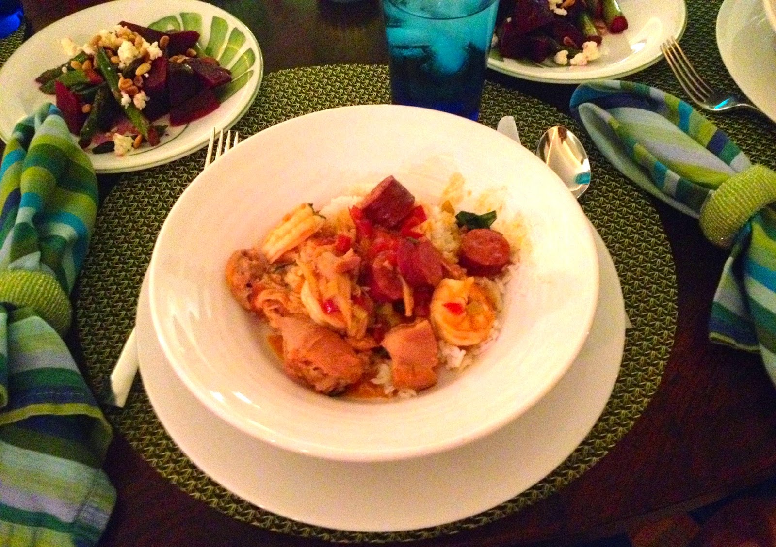 What makes a dish perfect for a dinner party? I’d suggest something that keeps the cook out of the kitchen so that he or she can really enjoy their dinner guests’ company as much as possible. Last weekend, we were entertaining The Bride and Groom, that is our two friends, Jill and Steven, who have the distinction of being the only