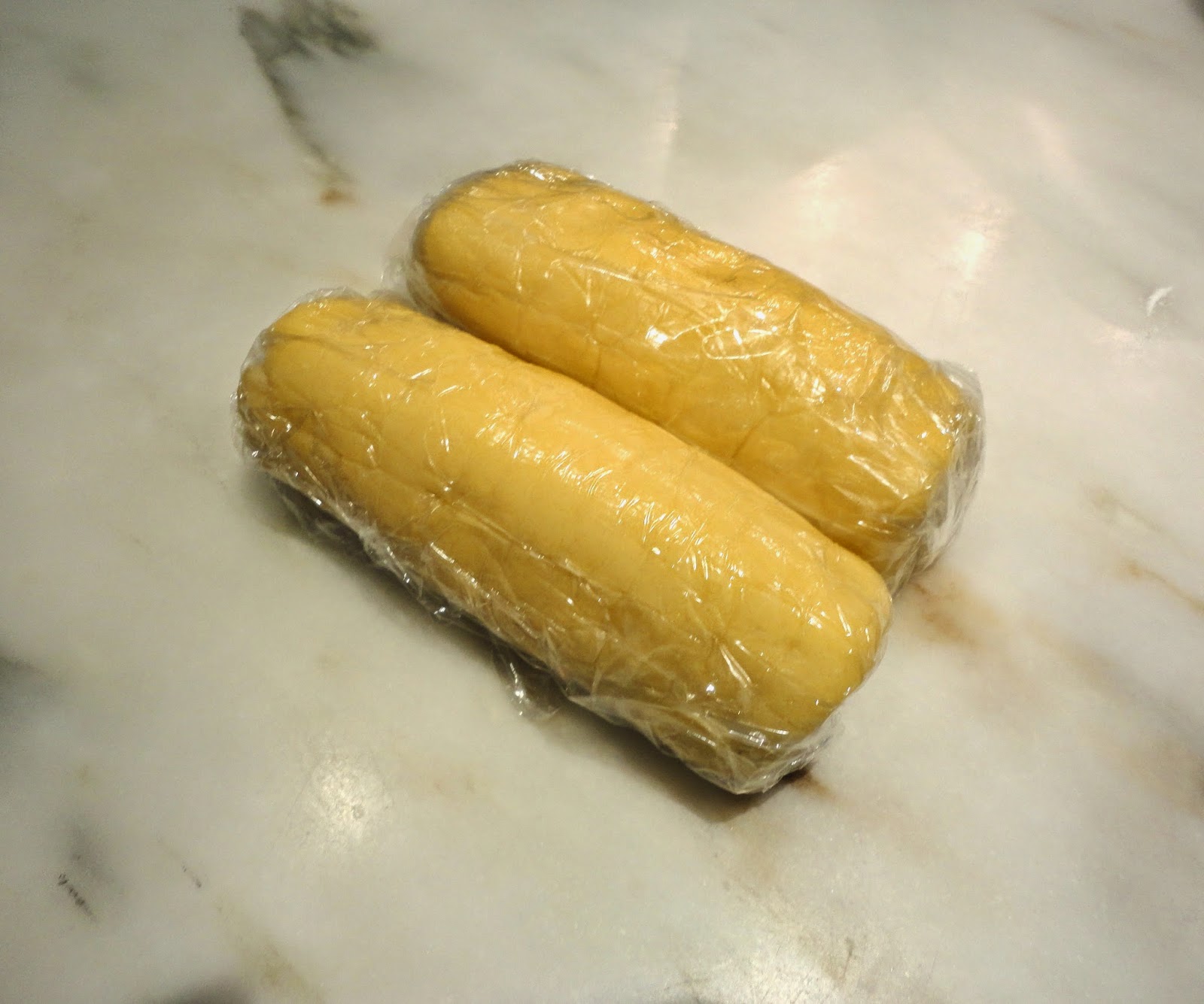 3. Scrape the dough onto a work surface, gather it into a ball and divide it in half. Shape each piece into a smooth log about 9 inches long (it’s easiest to work on a piece of plastic wrap and use the plastic to help form the log). Wrap the logs well and chill them for at least 2 hours. The dough may be kept in the refrigerator for up to 3 days or frozen for up to 2 months.