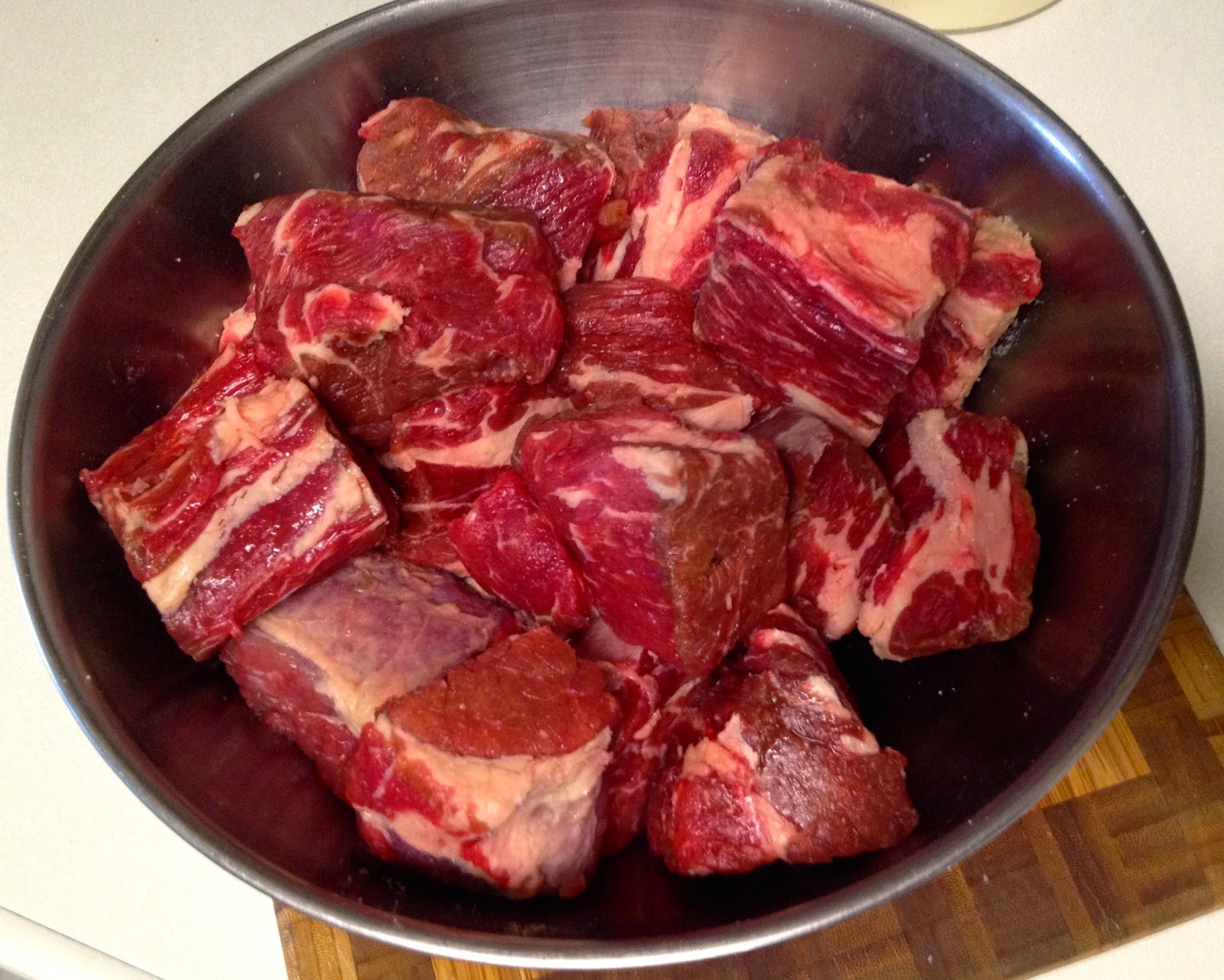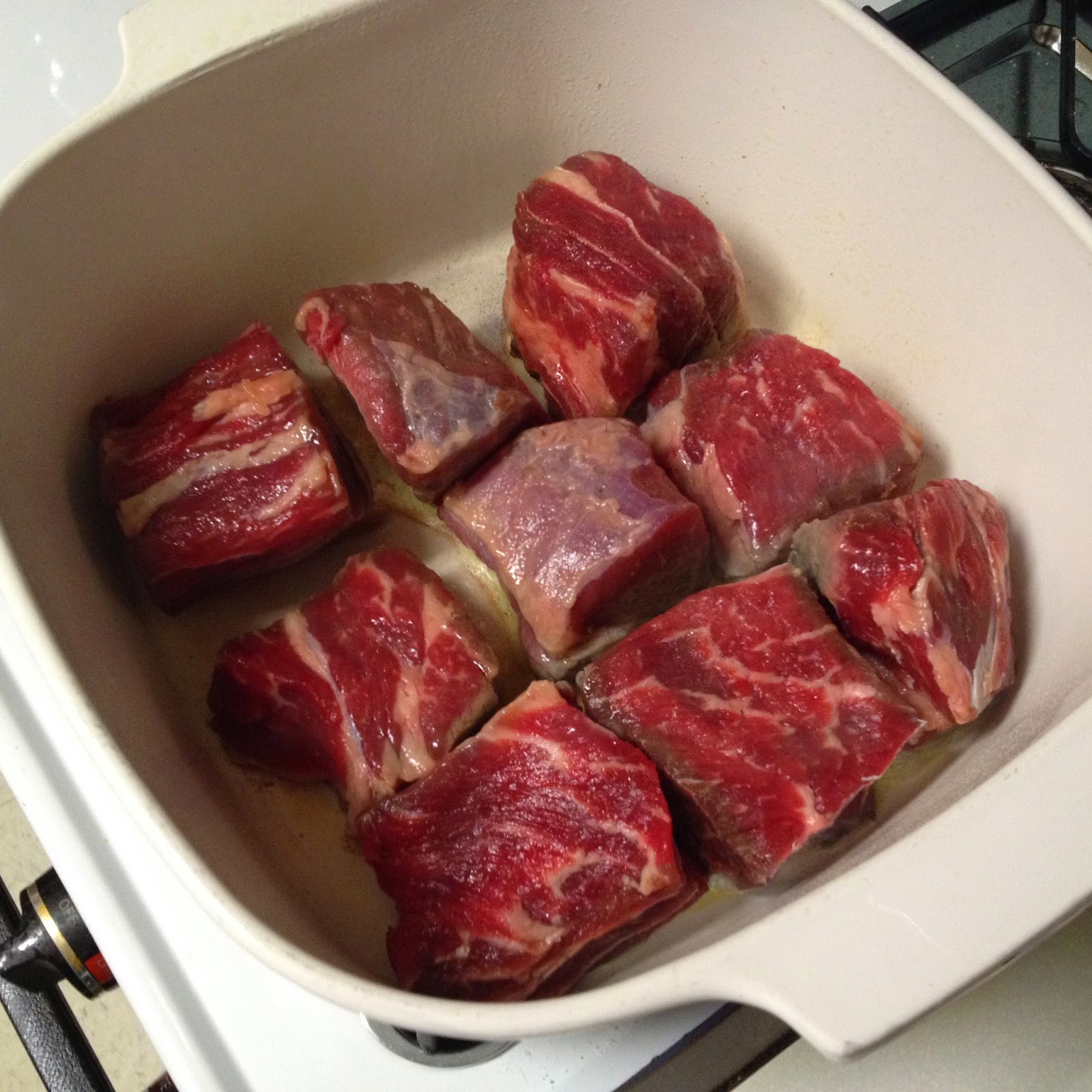 Andrew Janjigian of Cook’s Illustrated did a lot of heavy lifting to create the final recipe in the magazine. And true to form, he experimented with many versions of the stew. He went traditional but found the results lacking. He tried modern versions which he pointed out contained everything from onions to carrots, celery to herbs to pancetta. And of course, there were the versions incorporating tomatoes or tomato paste. Janjigian points out that the tomato had not even arrived in Italy at the time the Basilica was being built. Tomatoes were first imported to Spain from South America. The first mention of the tomato in Italy was in 1548 in Tuscany. And, believe it or not, they didn’t really hit their stride there until the 19th century. As to the beef itself, Janjigian reckons that the tile makers likely used shin meat which he praises for its gelatinous quality which would contribute to thickening the cooking liquid. He selected boneless short ribs to which he added salt and gelatin. I made mine with good old fashioned boneless chuck for lack of short ribs. (Costco has great ones, by the way.) And I added the gelatin as well. As mentioned, Janjigian tried to stay true to the original recipe with just four ingredients – beef, a head of separated garlic cloves, cracked peppercorns and a bottle of Chianti. But he was unimpressed with the results. That’s when he really started messing with the recipe.