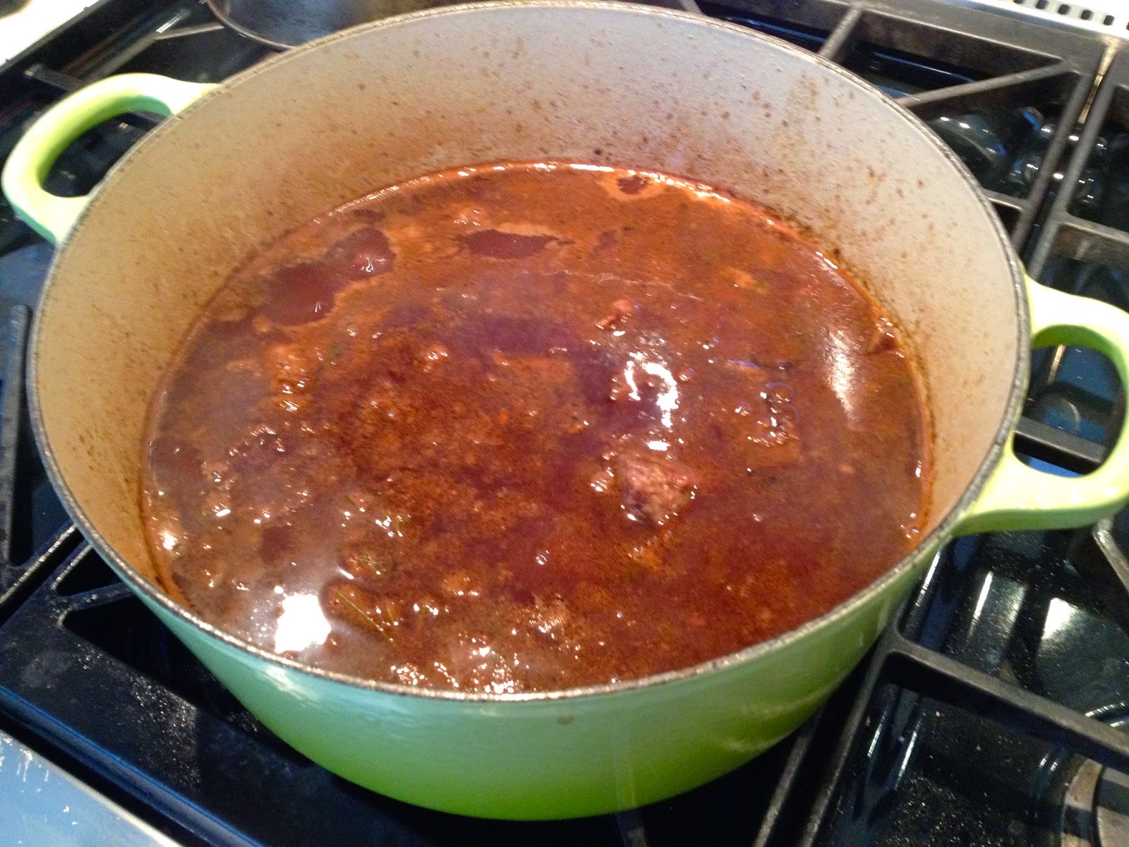 4. Return short ribs to pot; season with kosher salt and pepper. Reduce heat and simmer gently, uncovered, until short ribs are almost falling apart and liquid is thick enough to lightly coat a spoon, 2 1/2–3 hours.