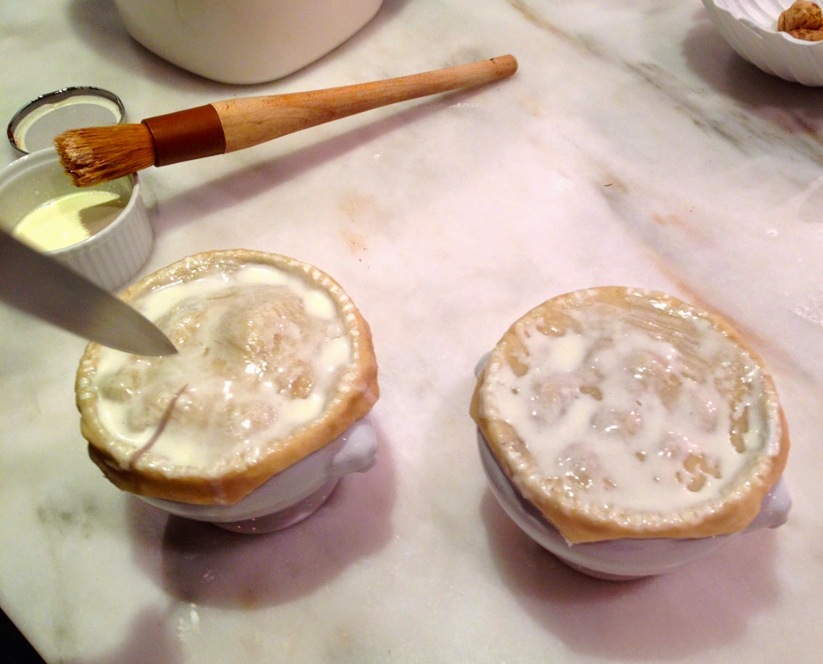 As I started making the pies early in the day, the weather looked fine.By 5 o’clock the snow created a virtual white-out, the winds picked up and were projected to reach gusts of 60 mph.The Governor asked everyone to stay off the roads and indoors.Our four dinner guests were not going to make it to our house that night.Was dinner a wash-out? No, because we were making individual pot pies, we simply baked two and took the rest of the filling home.Sadly, we left the pastry in the fridge.A blessing in disguise, I hauled out the filling, used store bought puff pastry and once again we feasted on our enormously comforting short rib pot pies.Here is the recipe that I adapted from Bon Appetit.