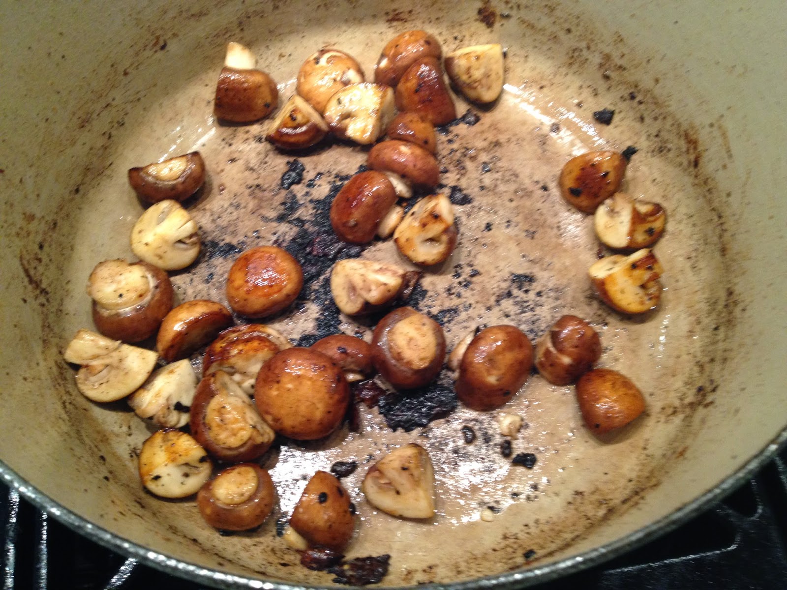 3. Put the mushrooms in the same pot and cook until they release some of their moisture and take on a golden color.