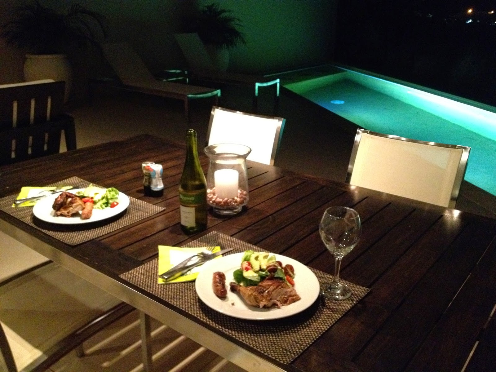 7. We ate in one night for the first time ever and loved it. We generally eat out every night we’re in St. Barth.  We love to try a wide range of restaurants of every price point. (We do write the Restaurant article for the www.wimco.comVendome Guide so we consider it research.)  But one night, wanting to give our readers suggestions for their dinners in, we stayed home and stayed out of the kitchen.  That day we’d headed to the BIO Market in St. Jean where we found ‘poulet dans le parking’…that is to say barbecued chicken being grilled outside the market in one corner of the parking lot.   There was also excellent sausage, nice looking slabs of ribs and Caribbean lobster on offer.  Since the grill at Bio only operates on weekends, during the week, pick up a rotisserie chicken at Marche U.  They’re right inside the front door on the left side.  But get there soon after their 8 o’clock opening or your chicken will have flown the coop.