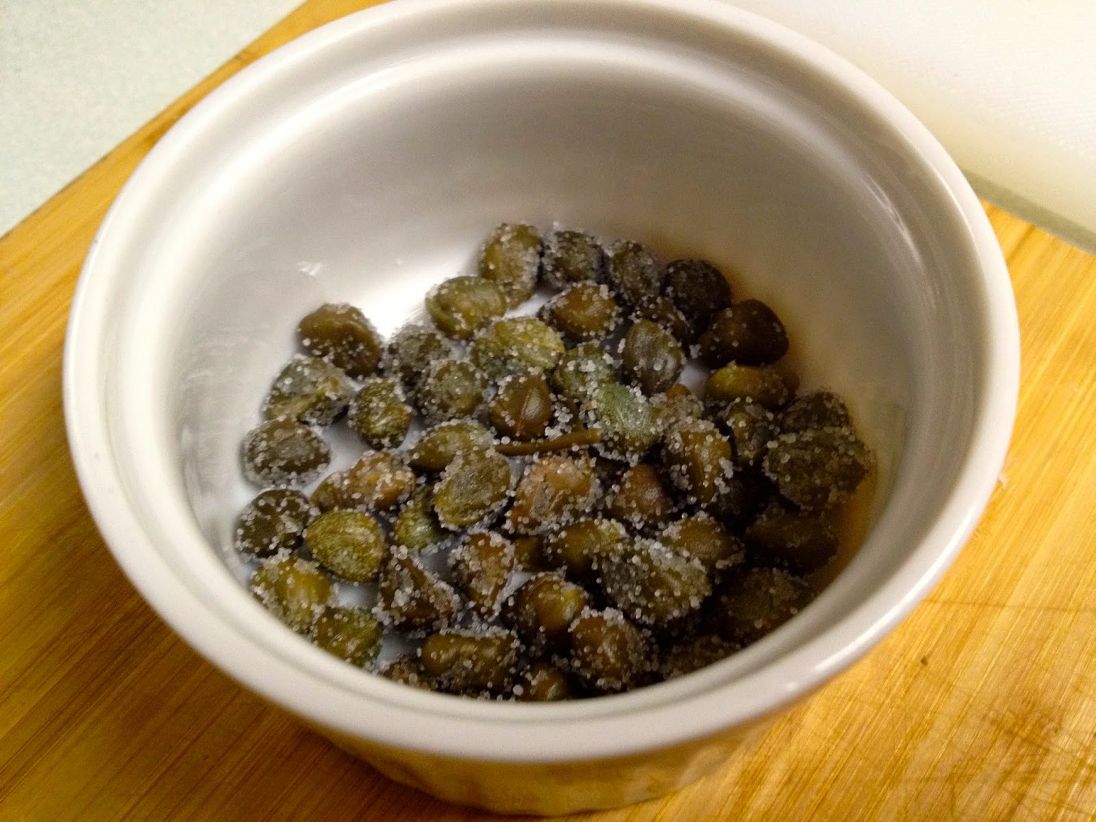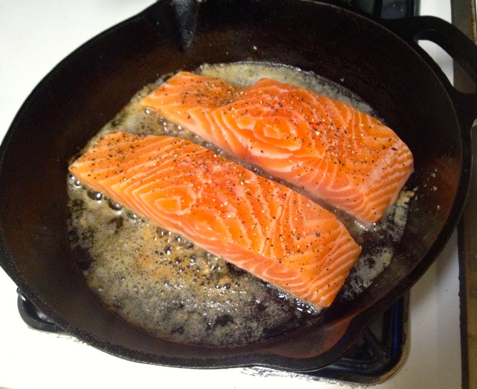 butter is used to ‘fry’ the fish in and the other half makes a quick pan sauce to spoon over the salmon once it emerges from the oven.  The other flavor element that sets this dish apart is the addition of two tablespoons of capers.  These become crunchy as they cook so you have this salty crisp element, a perfect counterpoint to the the fish itself. All in all this is a very simple recipe, a perfect weeknight meal and a great way to put fish into your diet.   Here is the recipe: