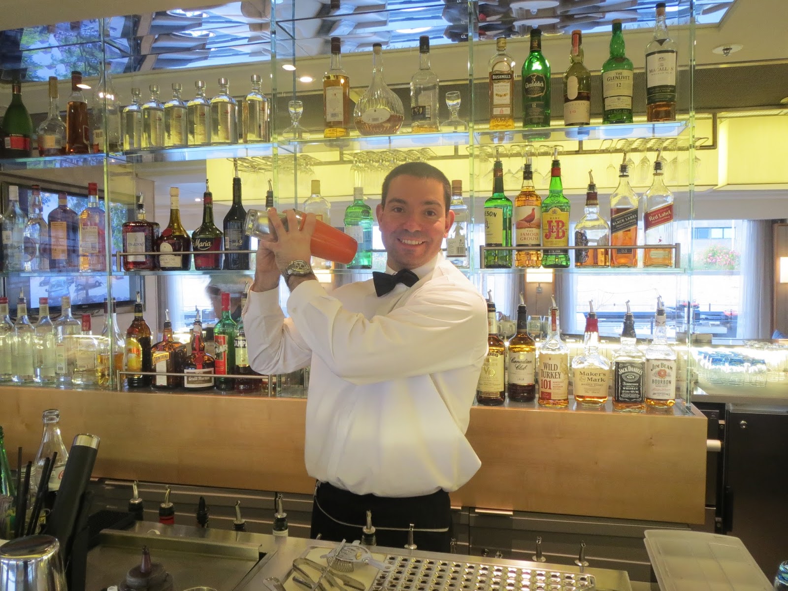 They hail from all over. There are stewards and stewardesses, servers and serveuses from Hungary and Slovakia, from Serbia and Montenegro, and from the Phillipines. They seem to genuinely enjoy their every contact with the passengers. They also have an uncanny knack of figuring out your preferences, (red, white or rosé ) within your first two meals. It will take a while for me to get used to not being called “Sir Monte” every morning and asked if I’d like a Mimosa with breakfast. (Why not?)