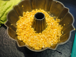 1. Shuck the corn and using a sharp knife and a Bundt cake pan, remove the kernels from the corn.